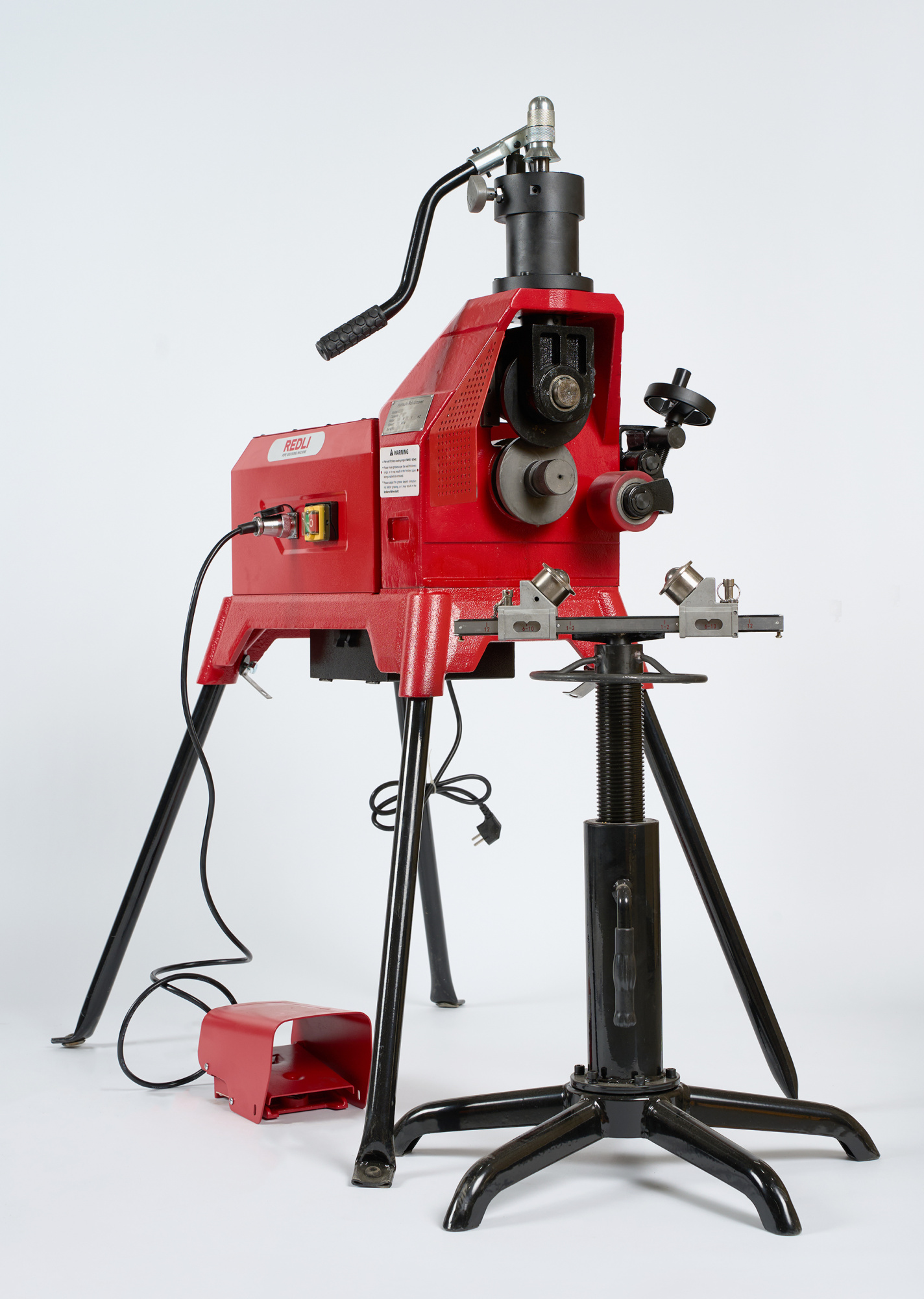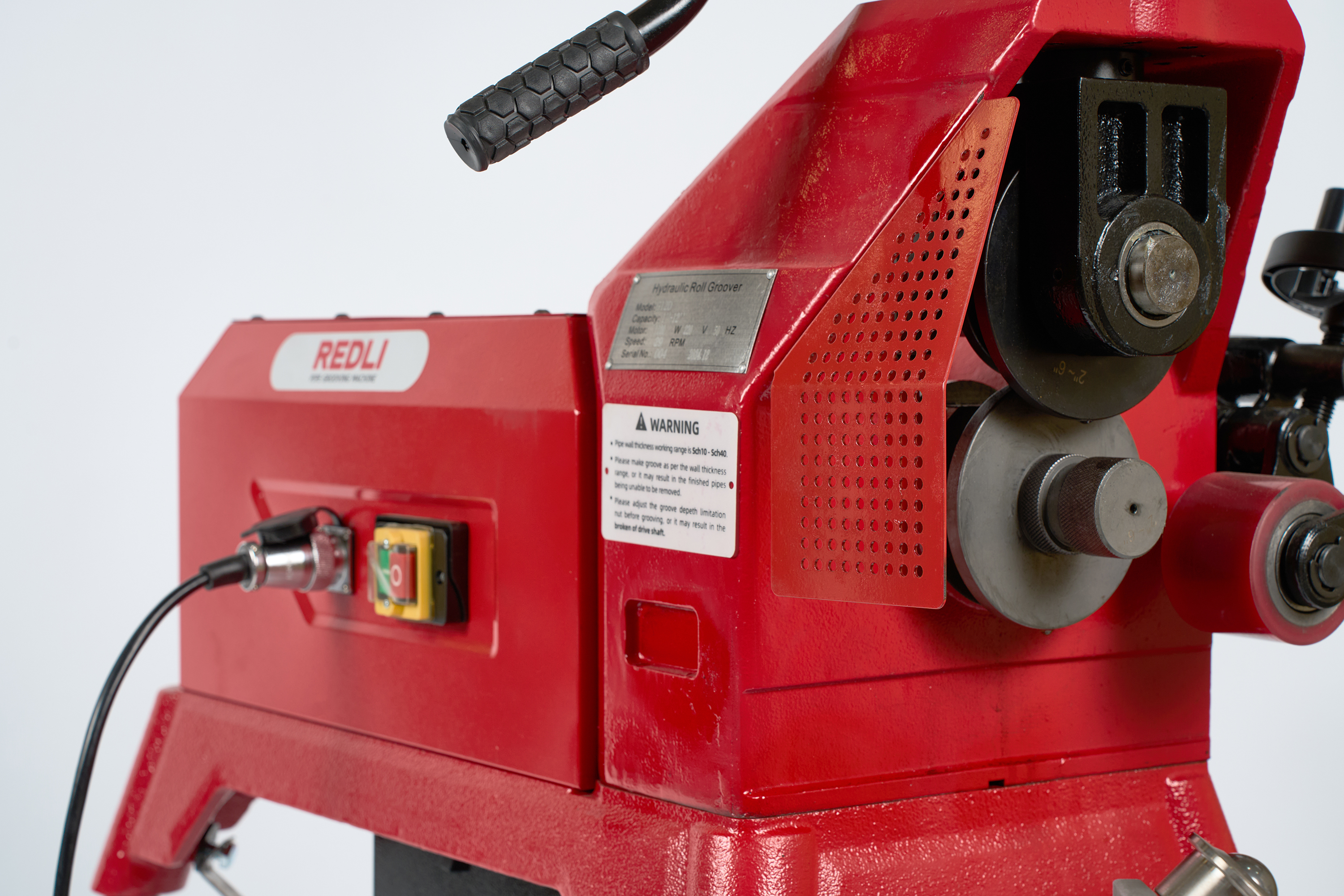 Станок оснащен обновленным гидравлическим насосом с удобной функцией регулировки глубины, работающим от асинхронного двигателя мощностью 1100 Вт. Станок способен выполнять накатку желобков на трубах диаметром 1 ”-12” Sch 10 или 1”-8” Sch 40. Конструкция приводного вала с отдельным накатным роликом обеспечивает его удобную замену. G12D поставляется со стандартными опорными ножками, что позволяет быстро установить устройство.